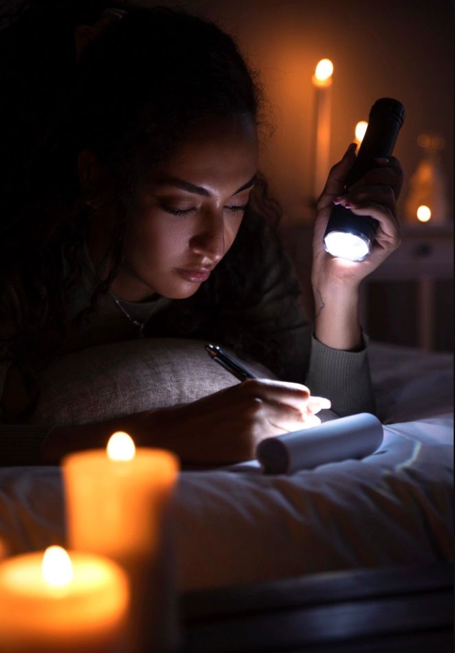 Manfaatkan cahaya alami atau lampu ponsel untuk mencari senter atau lilin. Namun, jangan bergantung terlalu lama pada ponsel agar baterai tetap tersedia untuk keadaan darurat.